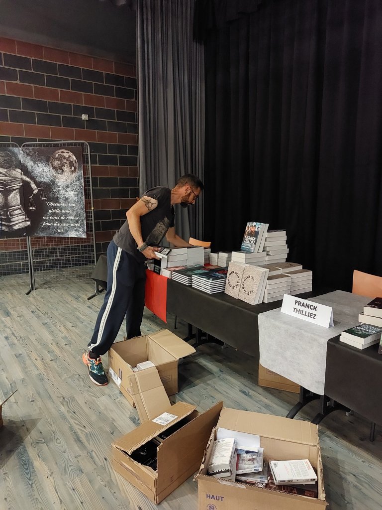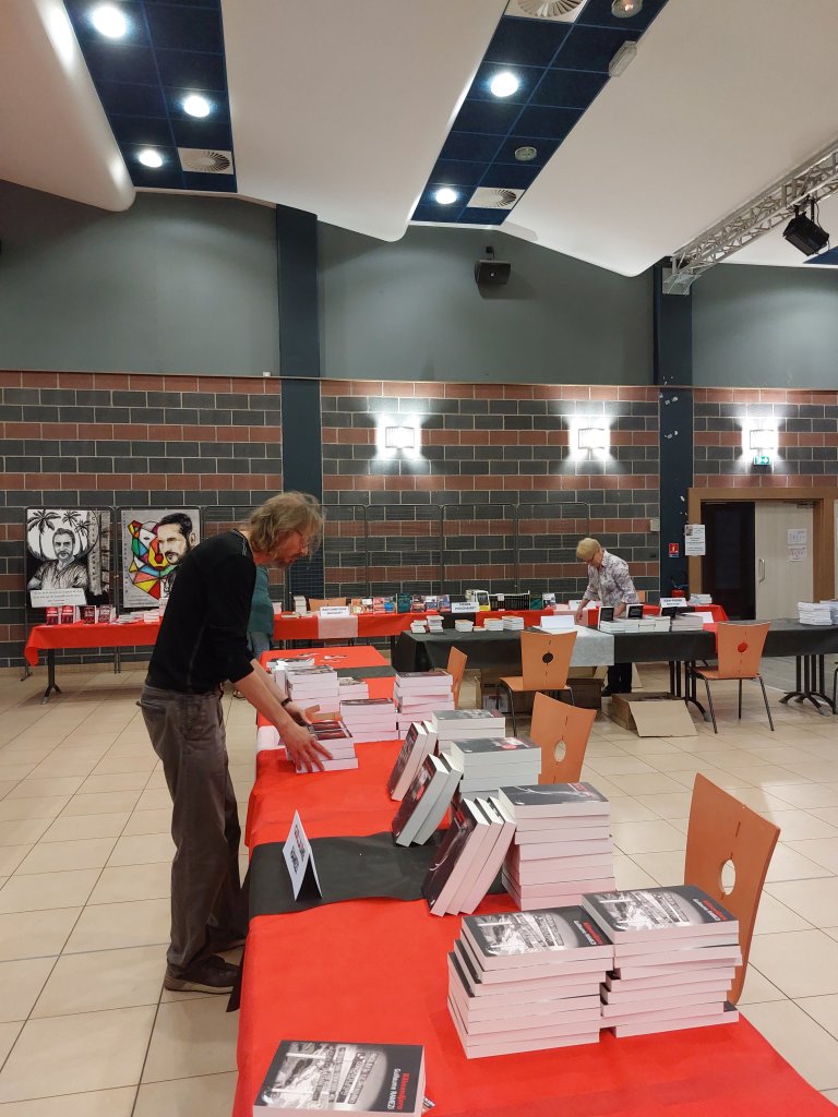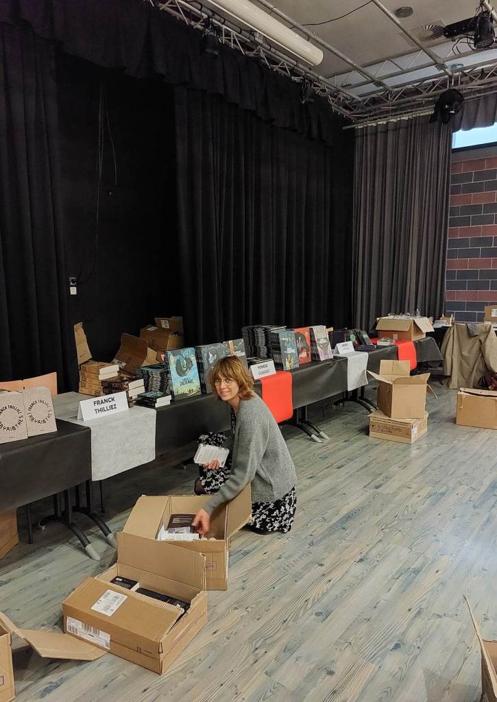 Et pendant ce temps-là, Christophe, aidé de bénévoles, préparent la salle et installent un nombre incalculable de livres. Tout sera parfaitement préparé pour le rush du lendemain pour le plus grand plaisir de tous.