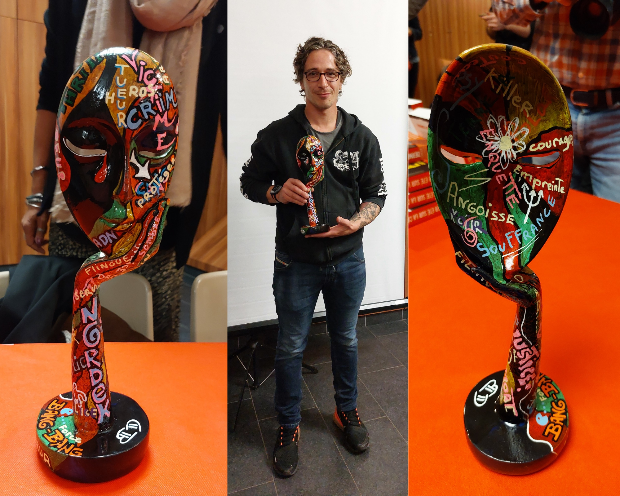 La veille du salon, ce fut une soirée qui commença par une conférence sur la cybercriminalité suivi de la remise du premier prix du polar nordiste dont le nom pour cette année est le prix « Nordek », (donné suite à un concours). C’est le nom choisi par France Desliers qui a remporté le plus de like sur Facebook. Elle était ravie de pouvoir ouvrir l’enveloppe et de nous annoncer le lauréat.