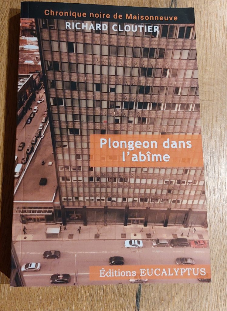 J’ai découvert Richard Cloutier avec le deuxième volet des Chroniques noires de Maisonneuve, L’étreinte des naufragés. Avec ce troisième roman, Plongeon dans l’abîme, je comprends mieux son univers et le cheminement qu’il nous fait prendre au sein de cette pseudo ville de Montréal.