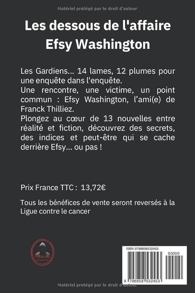 Dans Les dessous de l’affaire Efsy Washington, vous retrouverez des témoignages qui font office de confessions. Les gardiens nous livrent leur propre expérience autour de l’affaire avec leurs interrogations et leurs certitudes. Les bénéfices seront reversés à la lutte contre le cancer. Chaque lecteur aura sa préférence parmi ces nouvelles. Celle de S. est inquiétante car il ou elle se définit comme un serial-killer. Info ou Intox ?