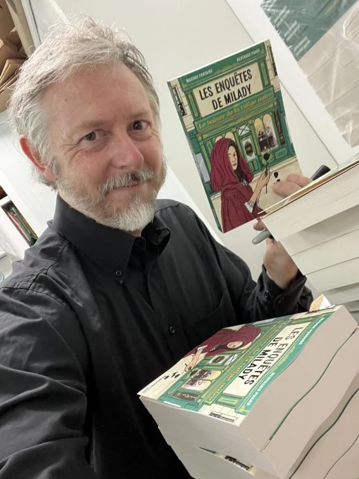 Originaire de Seclin (Nord), Maxime Fontaine est l’auteur de la trilogie « Sorciers » Gulf Stream éditeur, avec Romain Watson). A l’aise dans le monde de la fantasy, de la BD, du polar, il aborde aujourd’hui l’univers des Trois Mousquetaires en se focalisant sur le personnage de Milady et son intriguant passé, laissé en friche par le grand Alexandre… (source Fleuve éditions)