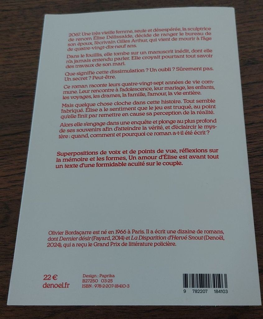 Un matin, Elise se décide enfin à ranger le bureau de son mari écrivain et tombe sur un manuscrit qu’elle ne connaissait pas.