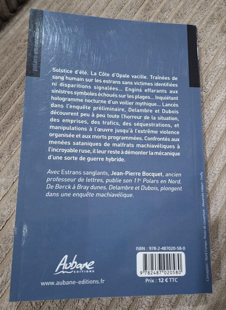 Avec Estrans Sanglants, Jean-Pierre Bocquet, ancien professeur de lettres, publie son 11e Polars en Nord. Il est également auteur de recueils de poème comme Errances, 2018, Vers un autre regard, 2019 et L’Amour viendra, 2024 chez Planet Hypérion.