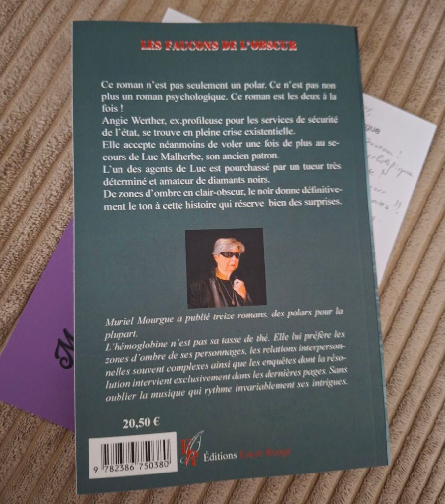 Muriel Mourgue a publié treize romans, des polars pour la plupart. L’hémoglobine n’est pas sa tasse de thé. Elle lui préfère les zones d’ombre de ses personnages, les relations interpersonnelles souvent complexes ainsi que les enquêtes dont la résolution intervient exclusivement dans les dernières pages. Sans oublier la musique qui rythme invariablement ces intrigues. (source éditions Encre Rouge)